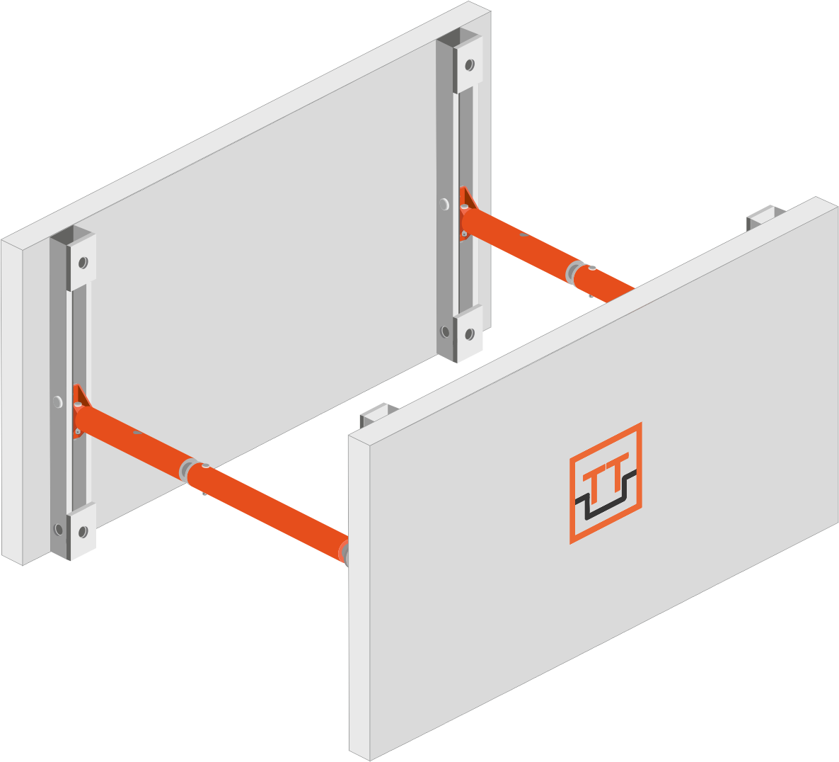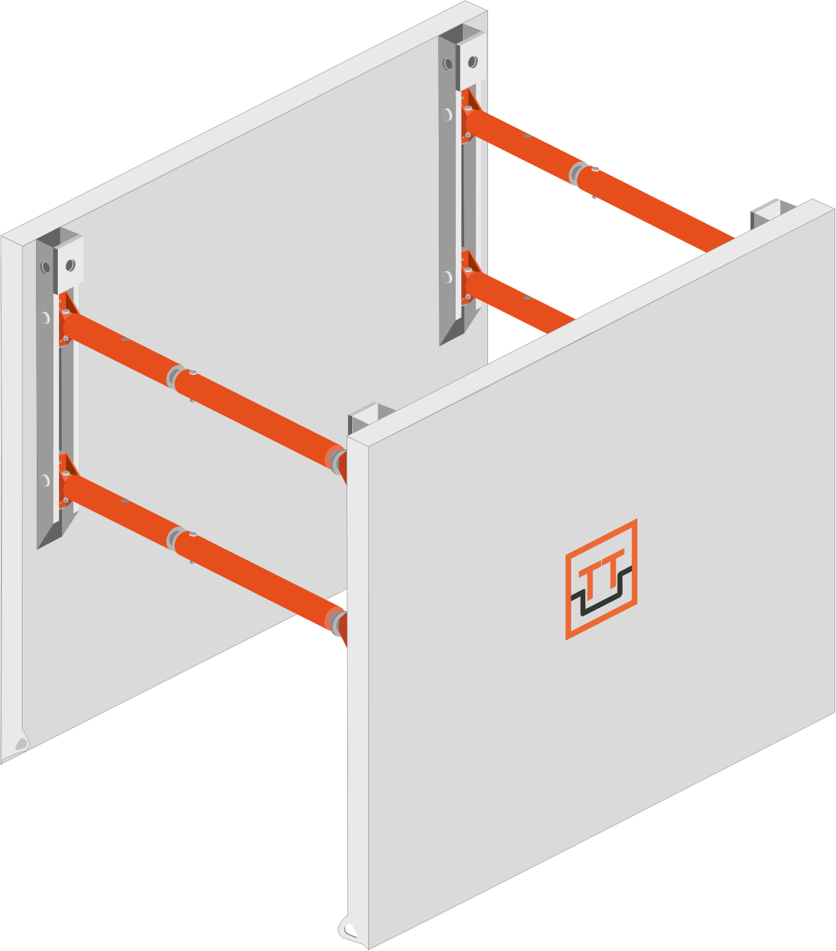 Данный бокс аналогичен боксу серии ТТ-400, но имеет более мощную усиленную распорку, что позволяет выдерживать большие нагрузки от грунта и близлежащих объектов, либо использовать щиты большей длины.